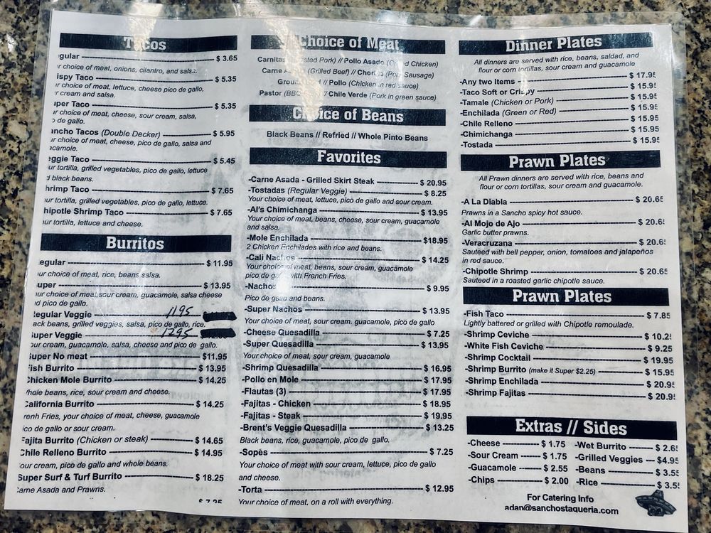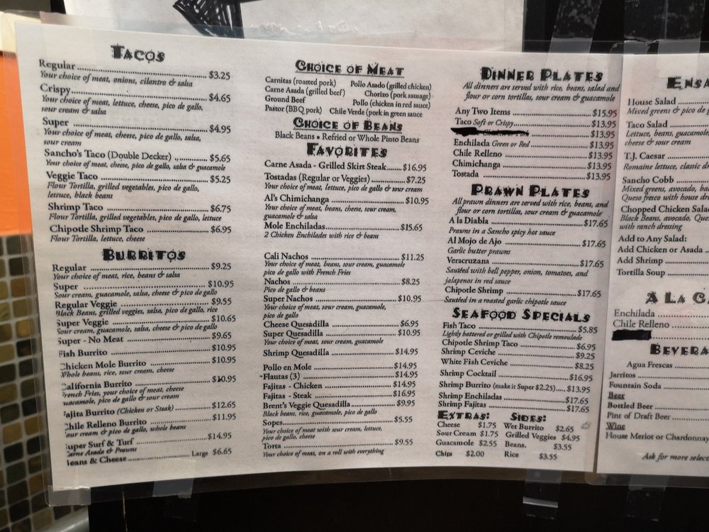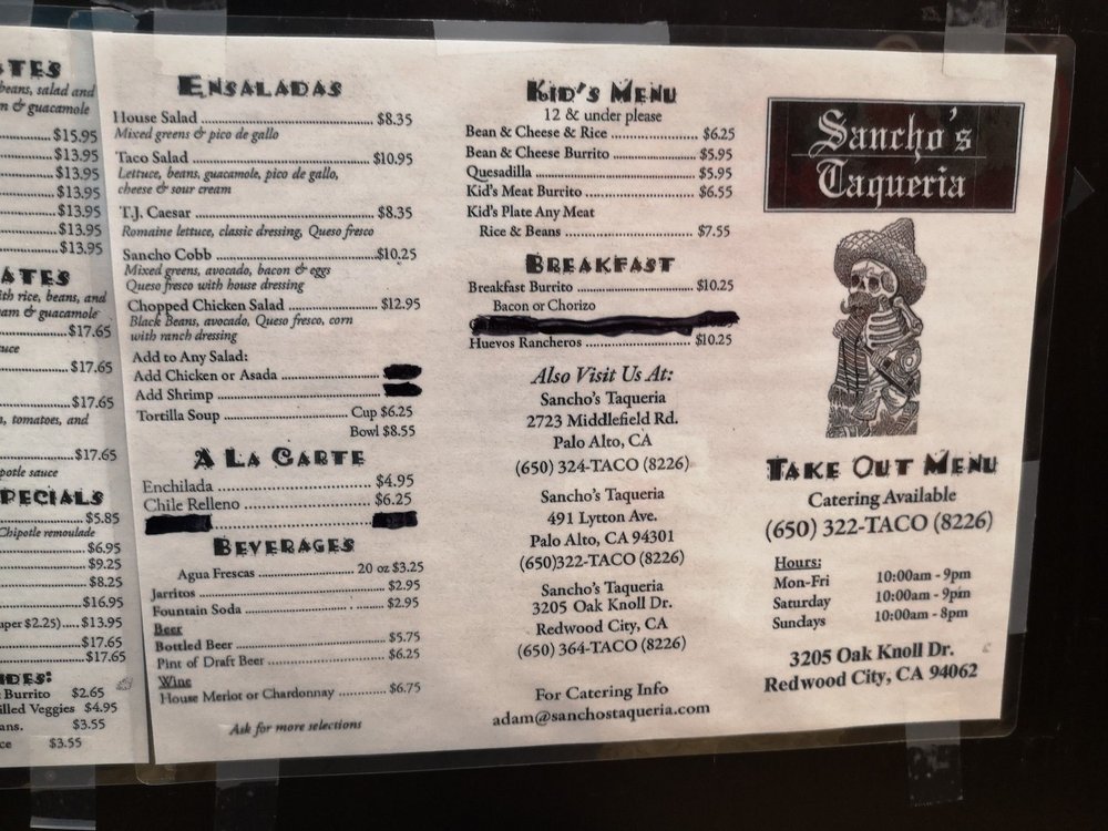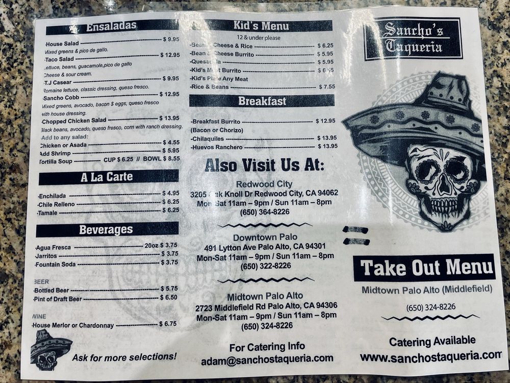 Sancho's Taqueria Palo Alto Menu (Update 2025)